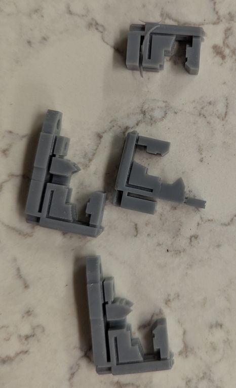 A few more changes were made to the LD Holder 3D print design, to improve performance and reliability. After buying a micro-meter to measure thicknesses, I could verify a reference o-ring compression thickness to within 0.1 mm, and updated the dimensions of the flat surfaces near the o-ring (by about 0.1 mm) so that the laser diode would be level at a reasonable compression level (with enough springiness to push the LD upwards if needed during adjustment, but not so much that the o-ring was deformed and squeezed out through the gaps of the adjustment mechanism), established by feel when tightening the adjustment bolt with a small allen wrench. I was also concerned about the holders deforming over time due to uneven resin curing and shrinkage, so I thought I would lessen this possibility by using a transparent blue resin. However after attempting the print with this new resin, I found that the dimensions weren't quite the same as I had tuned for the previous resin, and the parts warped to a similar extent when left out in the sun for a few days. Thus I switched back to the gray resin, and included holes in the part to allow UV light to better reach internal sections. I tried scaling up to printing over 10 components in one run, which were mostly supports for the outside of the PCBs added as an experimental afterthought, and encountered the challenge of removing the printed pieces from the printer. Because they were so closely packed on the print surface, and so adhered to the metal, I ended up breaking many of the pieces during my attempt to remove them, which caused shattered pieces to fall into the resin underneath (which would then have to be filtered out to avoid breaking the printer on the next print), making the experience very frustrating. I was intending to print 32 pieces per run (it ended up being possible to fit 33 or more) and having to repeat that ordeal for over 8 times to get all the holders printed was out of the question. I did not want to change the holder geometry to improve print separation, because I had already optimized and validated many aspects of the design and did not want to start over again. After briefly considering giving up and sending the design to pcbway for fabrication, I made a substantial improvement in the printed part removal process. The printer came with a metal "putty knife" that I had been using to remove the parts, thinking this must be the optimal choice, which had a thick metal edge that would push the parts instead of separating them from the printing surface, requiring lots of force and often breaking parts. In place of this, I used a thin razor blade scraper (of which I bought a 10-pack on Amazon, and which came in handy for many other tasks), which would easily slide between the printed part and the metal surface, and the part would fall off with almost no force required. I also added diagonal tapers (instead of sharp corners) on the side of the holder contacting the metal, which would give a starting point from which the separation line can propagate. With this approach, printing large batches did not seem so daunting, and I started working towards the required 256 parts.