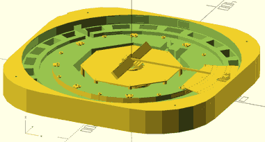 Next it is necessary to map the transition times to theta angles of the motor and mirror. If the mechanical and optical match were perfect, and the mechanical design matched the CAD file, this would be an easy task, but the optical transitions are not identical to the mechanical design and are dependent on encoder ring height in the sensor which may change over time. Thus the firmware should generate the map and update it dynamically (for instance if some components expand or contract due to temperature shifts). Then this map is used to identify the best estimate of current position, but in the presence of expected jitter of individual transition times. This is approached by a multi-layer averaging scheme, which updates the position map using speeds averaged over one revolution (which are mechanically guaranteed to be one revolution) and updates the current position using the mapped averages over the most recent transitions. It would be nice if there were a true constant speed motor driver to calibrate all these things, but with knowing rather little (512 transitions per revolution, spaced consistently throughout multiple revolutions even if not uniformly within each revolution, small changes in speed over one revolution, and a trustworthy clock) it is possible to eventually generate a usable output. The change in working encoder ring height from middle of switch to top of switch may have meant that the encoder ring holder would need to be redesigned after I had already sent the file for manufacture, but luckily this could be accomodated by placing the encoder ring on top of the holder surface rather than below the surface as originally planned, so I could use the same part.