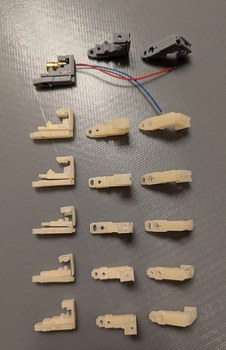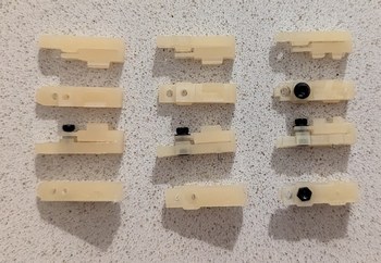 Left, a batch of 32 LD holders during assembly (this was repeated 8 times). Right, some LD holders that did not print correctly were found and discarded.
