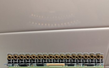 Slow motion capture of scanning through 32 laser diodes, to test the first installed LD board. A single LD flashes every ms, which is too fast for the camera so multiple LDs appear to be on simultaneously in the frames. By eye, the entire board appears illuminated simultaneously, it is possible to tell there is some flashing but not possible to distinguish whether the LDs are illuminated from left to right or from right to left. In actual operation this rate will be over 10 times faster.