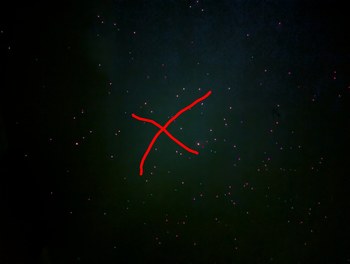 Projected section of a star map, with a long exposure photograph that makes the colors look more dramatic than by eye. The constellation near the center is Cygnus, coarsely outlined in red in the second photo.