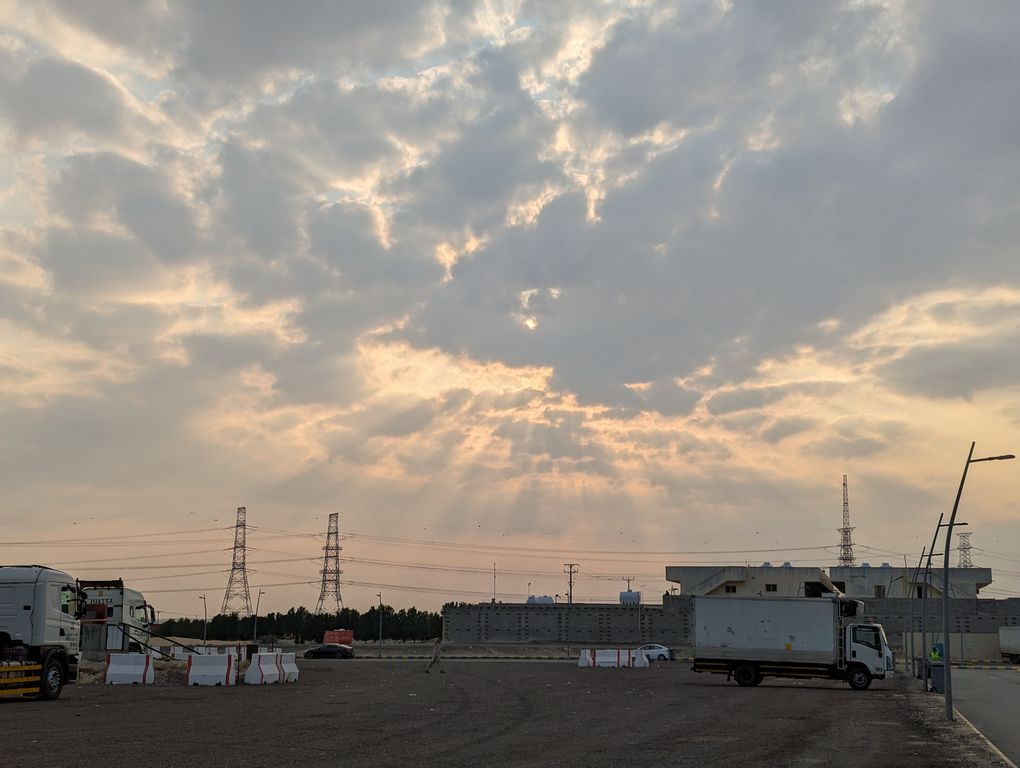 When the weather conditions are right (scattered clouds and a light haze), looking in the direction of the sun, one may see between the clouds the appearance of rays or beams of light emanating from the sun.