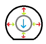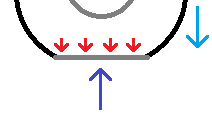 Visual representation of the question. Red and green arrows represent air pressure while the blue arrow represents vehicle weight.