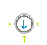 Visual representation of the tire-ground contact. Red arrows represent air pressure, the light blue arrow represents vehicle weight, and the dark blue arrow is the opposing force from the ground.