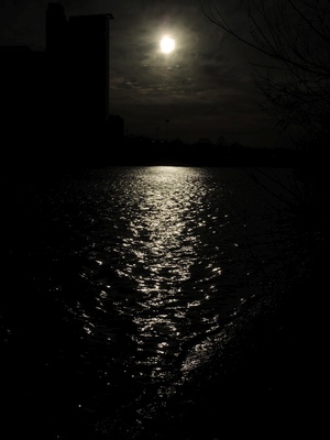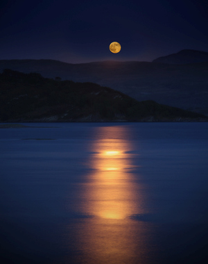 Reflections of the moon in water. To get sufficient details on the reflection, features of the moon should be visible (not overexposed).