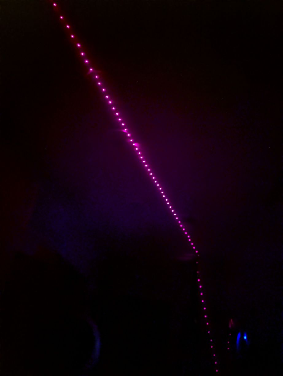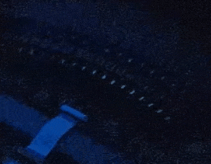 Slow motion capture of scanning through 32 laser diodes, to test the first installed LD board. A single LD flashes every ms, which is too fast for the camera so multiple LDs appear to be on simultaneously in the frames. By eye, the entire board appears illuminated simultaneously, it is possible to tell there is some flashing but not possible to distinguish whether the LDs are illuminated from left to right or from right to left. In actual operation this rate will be over 10 times faster.