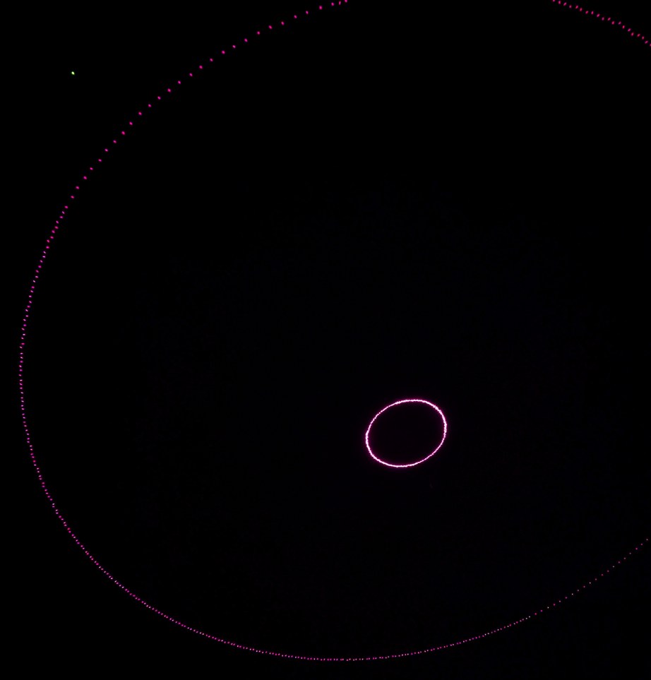 With the large mirror, I could plot a circle near zenith and near the horizon, for confirmation of angle range and theta tracking.