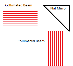 Optics basics: a collimated beam is reflected well by a flat mirror and poorly by a curved/unpolished surface.