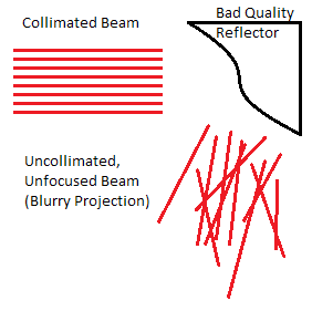 A physical manifestation of a poor quality reflector (left) and poor beam collimation (right).