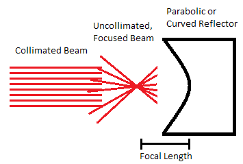 A curved reflector focuses the collimated beam, or collimates a focused beam if used in reverse.