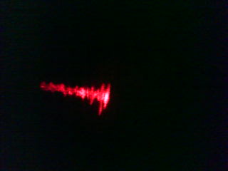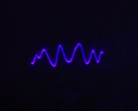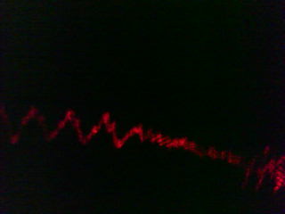 With these optics, it was possible to get very high beam quality, making this laser oscilloscope comparable in visual quality to digital visualizations. Its response is of course instant and always synchronized with the sound on the speaker. As can be seen in the video, it is not responsive to high frequencies, but quite responsive to bass and somewhat responsive to mid-level frequencies. This is caused by the ear's sensitivity and soundwave energy content, which requires the physical speaker movement amplitude to decrease as higher frequencies are attained for the sound to be heard at an equivalent loudness. In other words, if a high frequency note were played with the same amount of speaker deflection as a bass note, it would be painful to the ear but then visible on this oscilloscope. This additionally explains why finer details can be seen with the oscilloscope as the sound level output to the speaker is increased.