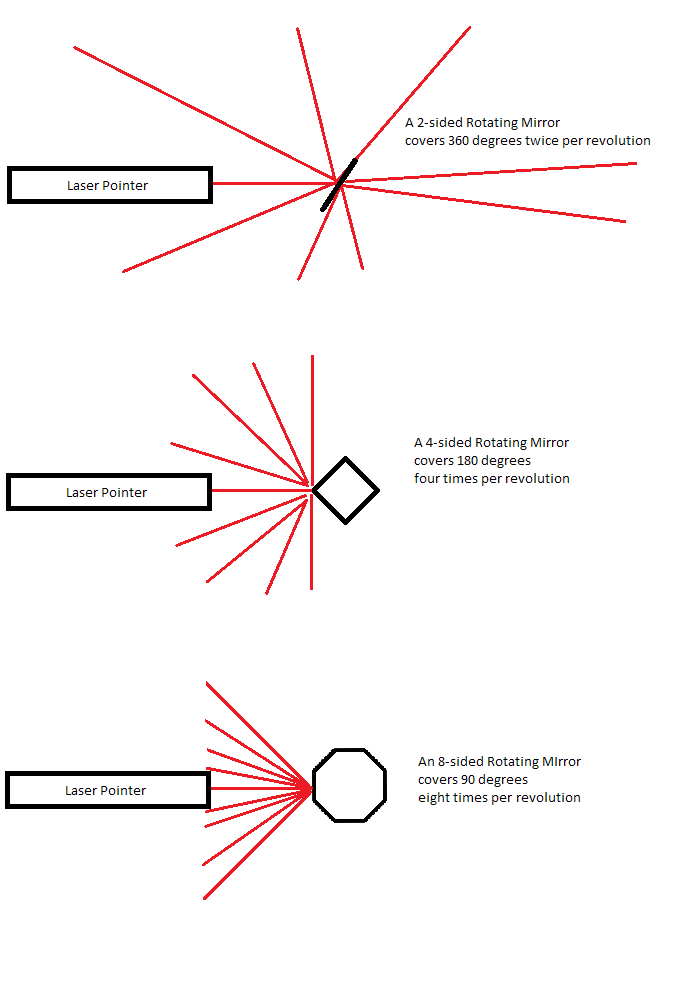 The properties of various rotating mirror types are shown (2-sided, 4-sided, 8-sided mirrors).