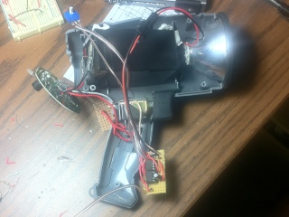 That essentially completes the project. The most difficult part is fitting the circuit in the limited space available inside the spotlight, and integrating it along with the other hardware already there (ie switch and battery charger).