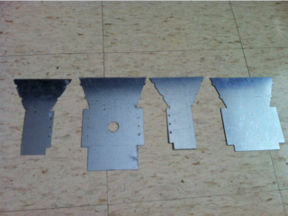 The freshly cut pieces for the combined wave guide and horn antenna. These will be bent to lock in place with each other, and then bolted on to the magnetron.
