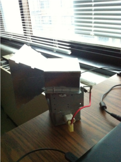 The microwave gun was an interesting concept, but it has not proven to be very useful. I have been able to reset the time on my alarm clock by shooting it with microwaves from about 5 feet away, so there is potential for interference with electronic systems. It is also possible to reset calculators or other digital devices, although I have not tried it on my laptop or cell phone for risk of ruining something. However no permanent damage was done to either the alarm clock or calculator, they were simply reset. If the gun is pointed away from the cell phone, there is no interference with call quality (as opposed to standing in front of a microwave oven, suggesting this project actually has less undesired leakage than a consumer device). As an additional feature, the gun can be used to light fluorescent bulbs (even ones without the attached starting circuitry). This is also a way to test a microwave oven for leakage, although be aware that it takes quite significant leakage to light the bulb, that is similar levels would be more easily noticeable through heating of your body. I made a short recording of the microwave gun used to light up a fluorescent bulb that is not connected to anything - you can download it here. The video was necessary because my camera did not adjust quickly enough to the light, you can see in the video that when the bulb lights up it is just a white blur.