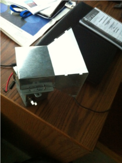 Final version of the microwave gun, with properly mounted magnetron and horn antenna for proper microwave directionality.