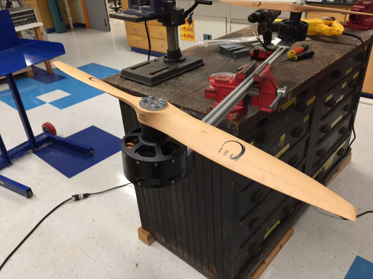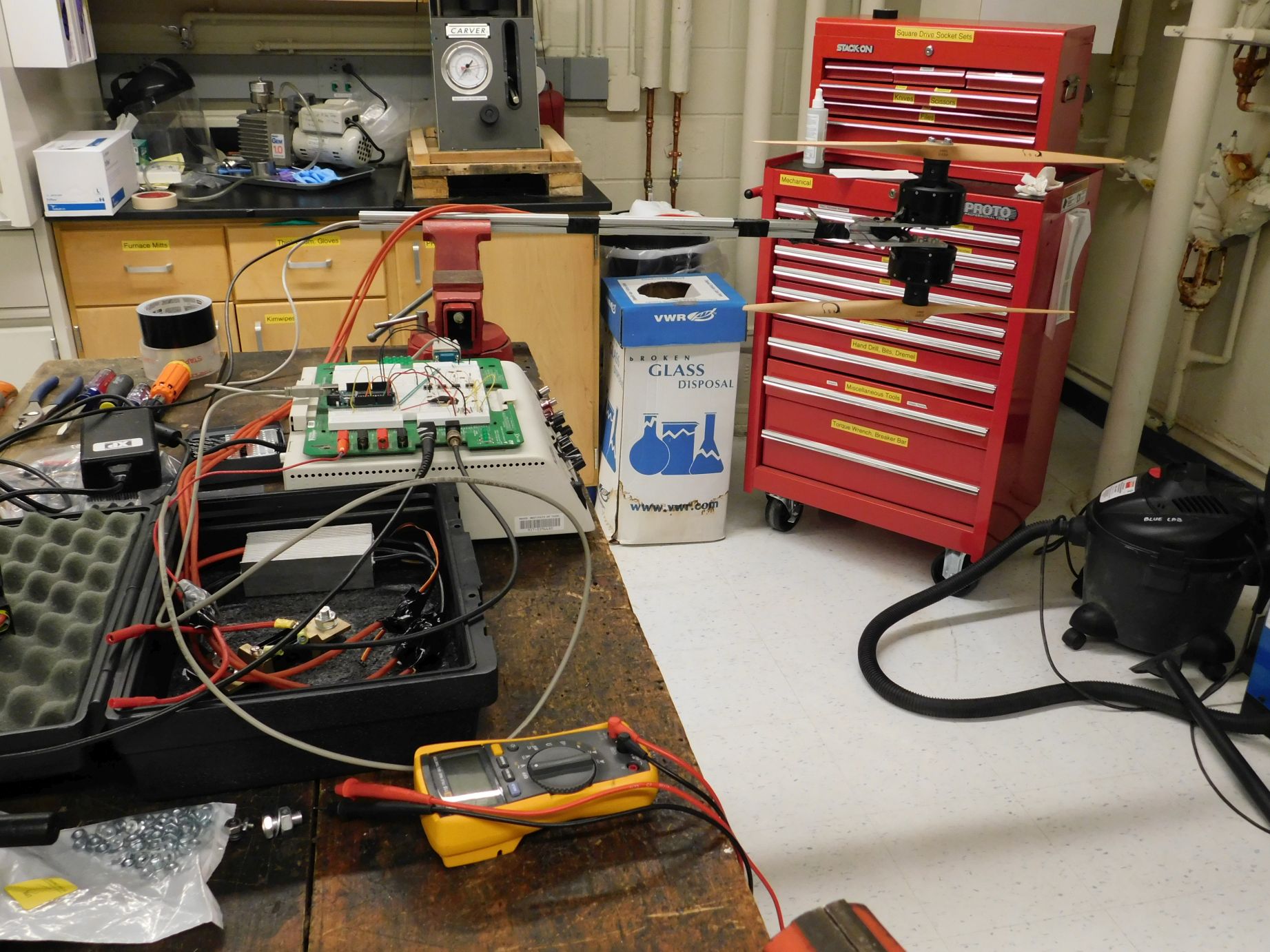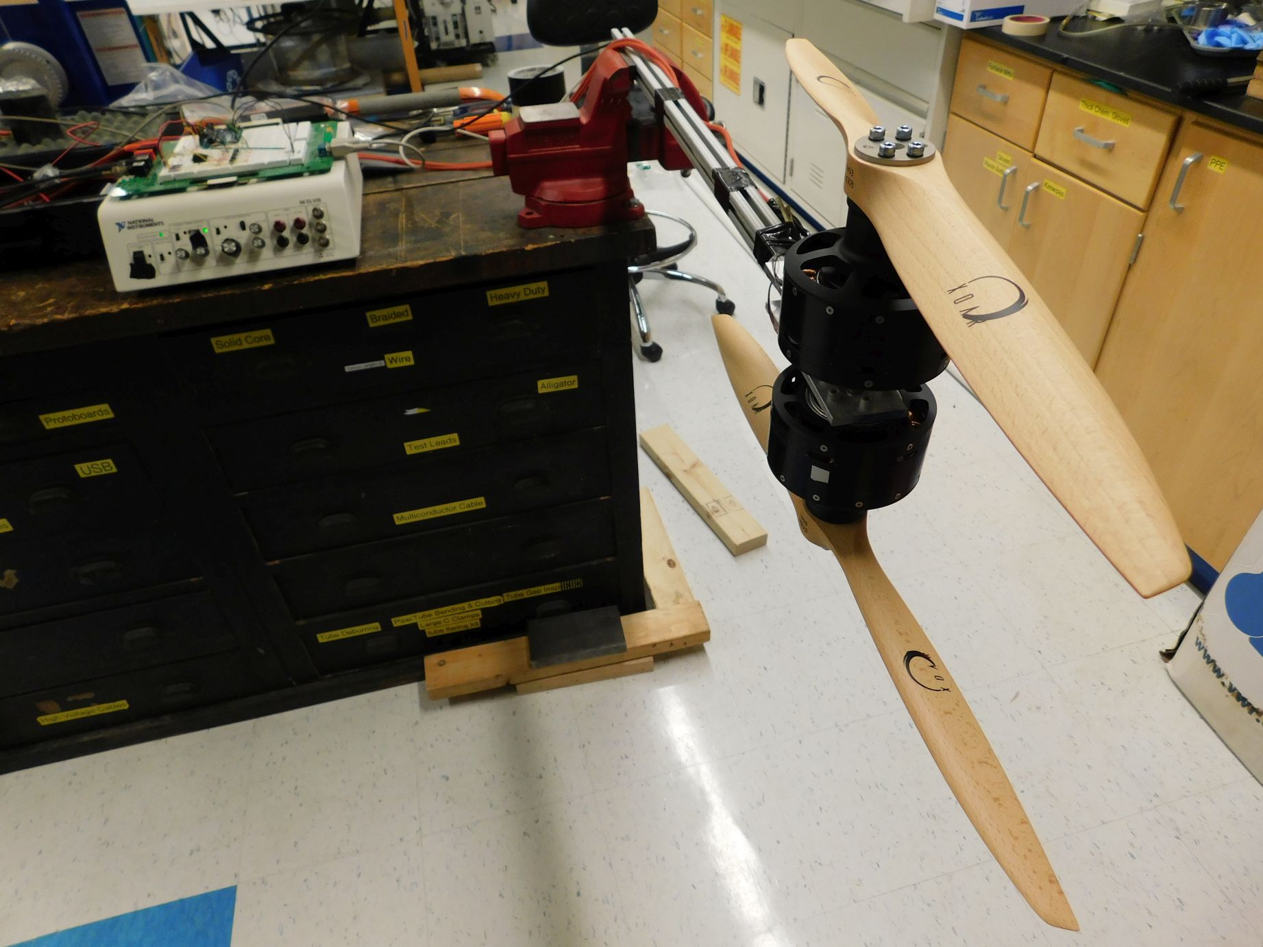 The electronics configuration for the motor and propeller test.