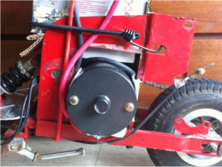 The key switch is installed and everything else is put in place. Note the small hole to the left of the motor - that is where the key is inserted to activate the scooter.