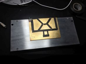 For the touch surface itself, from the prototype version I found that the copper formed an oxide layer due to interactions with the oils from the skin (as expected; this can be seen on statues for example). So in the final version, I plasma-cleaned the copper layer and coated it with about 50 nm gold. The gold should provide an oxidation-resistant surface and enhance the measurement of conductivity over a long use time. After gold coating, I milled the pad connections similarly on the CNC, treated the solderable pad areas with flux as above, and then soldered wire connections from the touch pad board to the sensing board. Below the touch board I installed the aluminum plate acting as electrical ground (connected to sensing board ground using one of the screws, since aluminum is difficult to solder), and the sensing board was installed under the plate in a 3D printed case. One could probably make a more clever design where these boards are combined into one double-sided board and then the device could be made very thin without needing the aluminum plate or thick plastic case. Presently the thickness is 0.75 inches which is slightly uncomfortable to use without placing some support padding behind it for the palms.