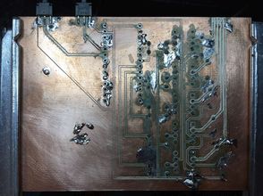 Bottom of the sensing board after a sad and failed attempt at soldering and cleaning off flux.
