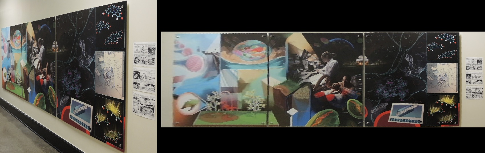As an example, we will straighten the following photograph of three posters. The posters are square, which will help determining the aspect ratio: