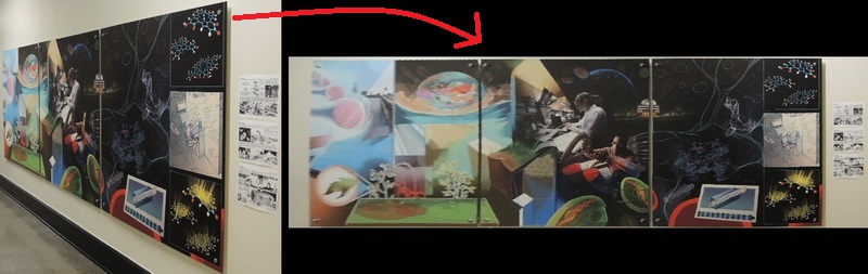 An example of the image straightener in action. Left side is the original photograph of a poster, and right side is the transformed photograph to make the poster appear as though it was photographed squarely.