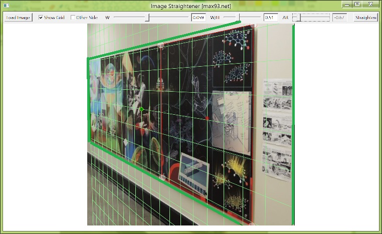 Click the Straighten button to transform the image. Note that the Straighten button is only available if the Draw Grid checkbox is checked, and the grid was drawn without errors (indicating properly chosen constants).